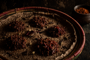 調理の工程も直線的だ。まず鉄鍋に油脂を熱し、玉ねぎと生姜・ニンニクを炒める。肉を加え、強火でしっかり焦げ目をつける。トマトを入れて潰しながら炒め合わせ、蓋をして蒸らす。仕上げに岩塩と黒胡椒。青唐辛子とコリアンダーの葉を散らすこともあるが、それも補助的な存在だ。