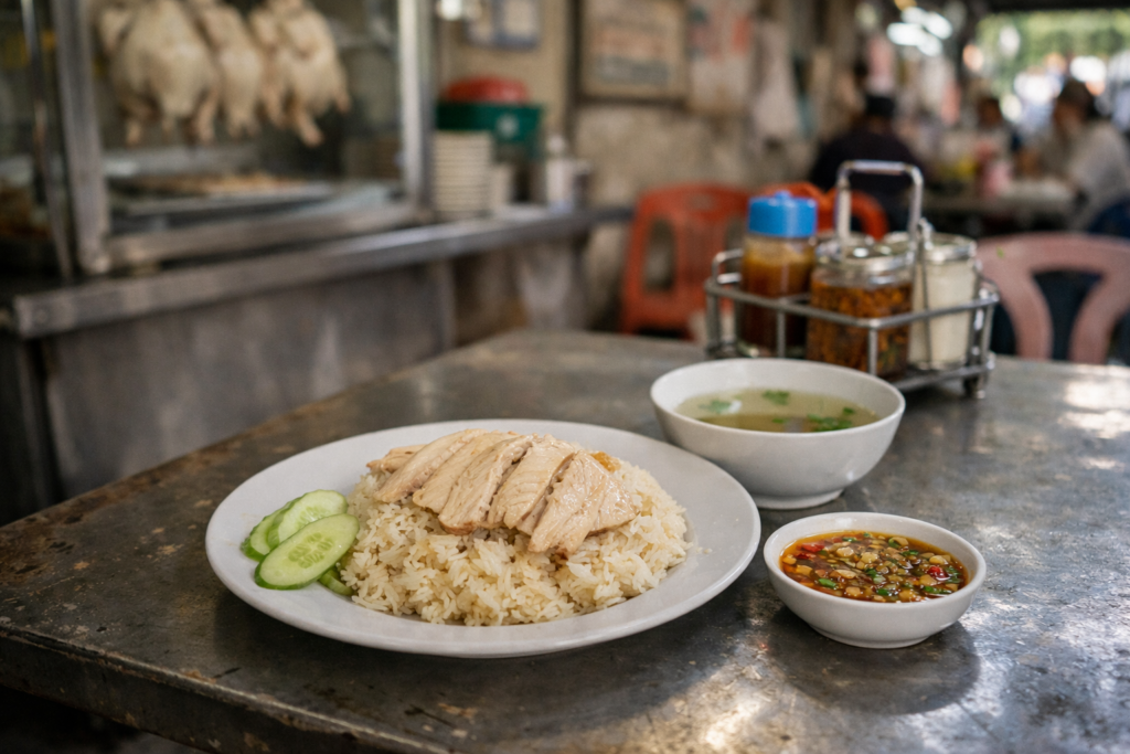 旅の途中、何を食べるか決めきれない時がある。屋台の前で少し立ち止まり、鍋の湯気を見て、皿の並びを見て、それでも決め手がない。そんな時、とりあえずカオマンガイにしておけば大きく外すことは少ない。